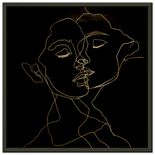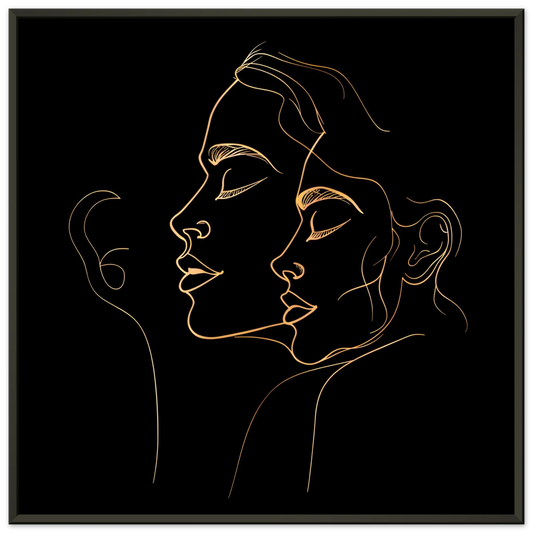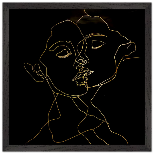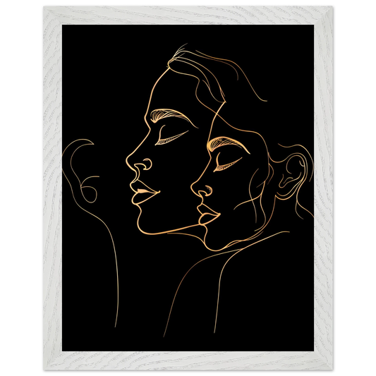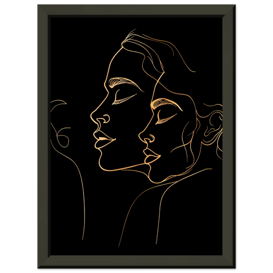 Abstract Line Art – Intimate Faces Silhouette. Premium Wooden Framed Poster With Premium Matte Paper