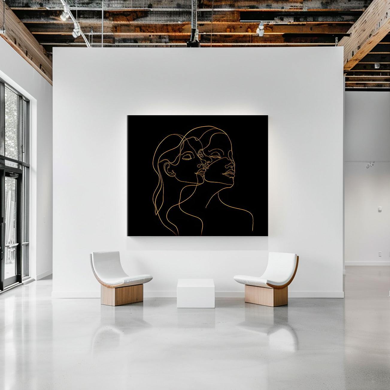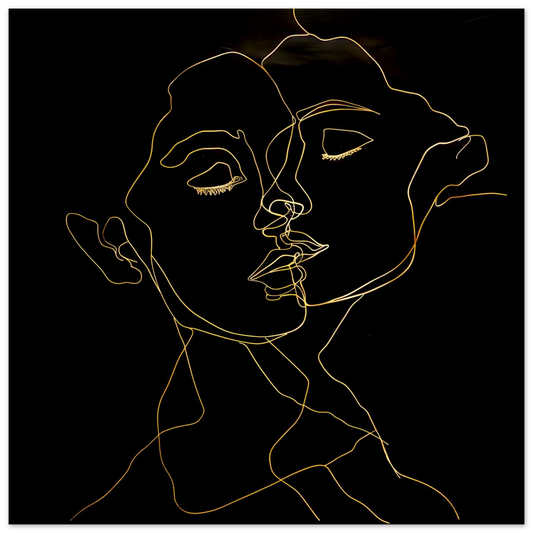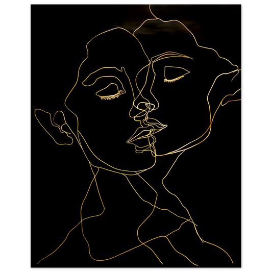 Abstract Line Art – Intimate Faces Silhouette. Aluminum Print