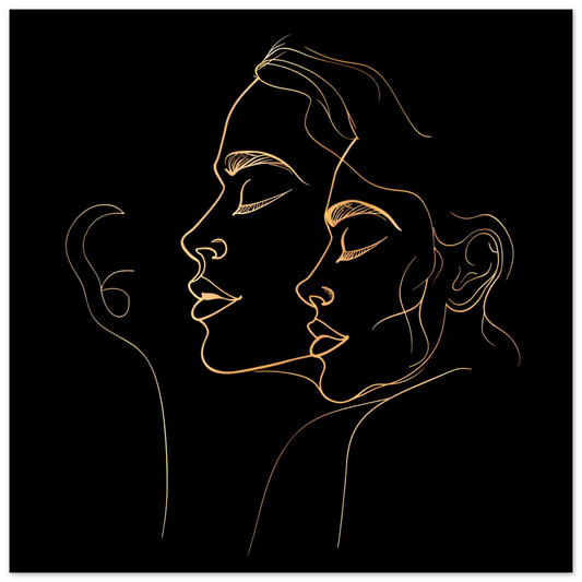 Abstract Line Art – Intimate Faces Connection. Premium Semi-Glossy Paper Poster