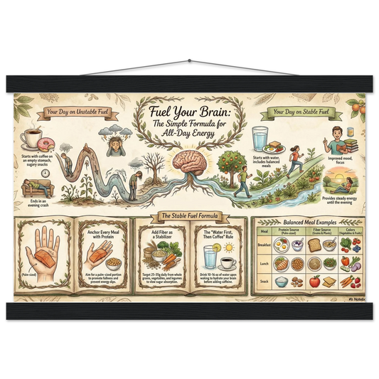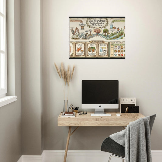 Fuel Your Brain – Daily Energy Formula (Vintage Style Art Print) - Infographic - Premium Matte Paper Poster with Hanger