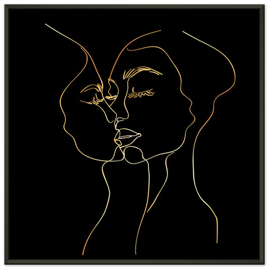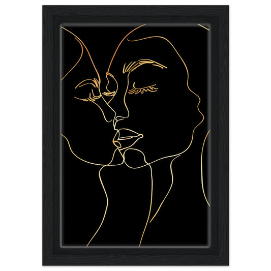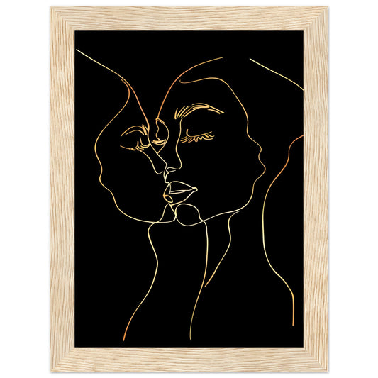 Golden Connection: Abstract Line Art. Premium Matte Paper Wooden Framed Poster