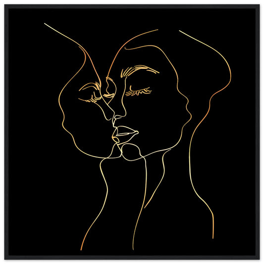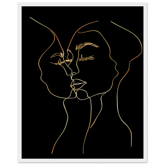 Golden Connection: Abstract Line Art. Premium Matte Paper Metal Framed Poster