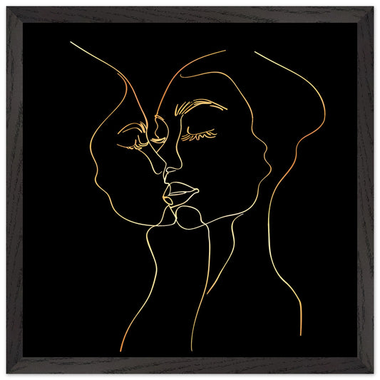 Golden Connection: Abstract Line Art. Premium Matte Paper Wooden Framed Poster