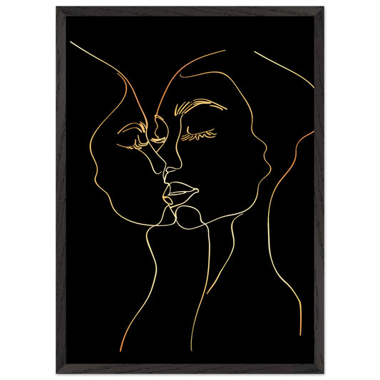 Golden Connection: Abstract Line Art. Premium Wooden Framed Poster With Premium Semi-Glossy Paper
