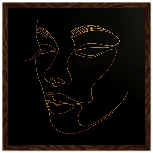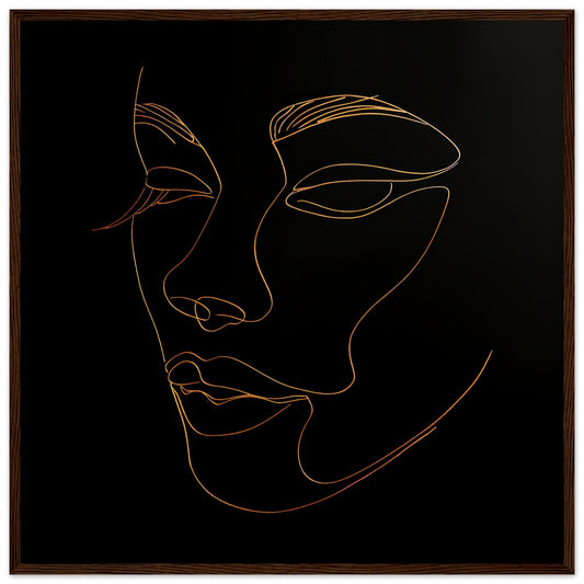Golden Line Face. Premium Semi-Glossy Paper Wooden Framed Poster