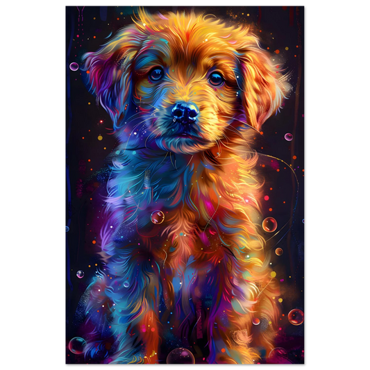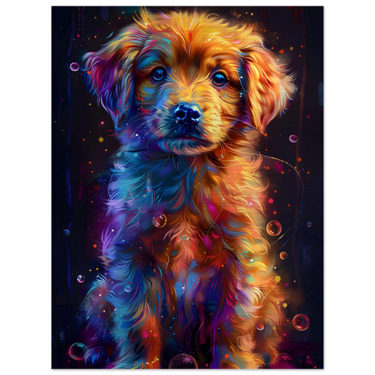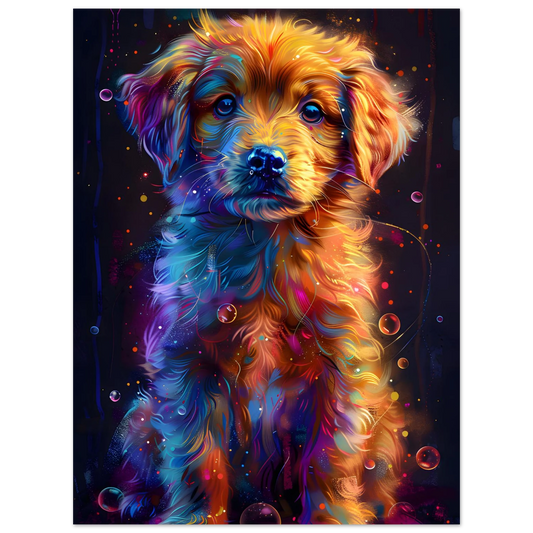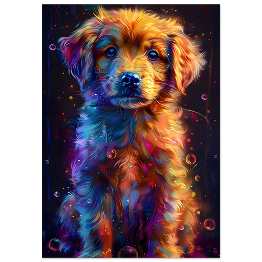 Neon Glow Puppy – Vibrant Cosmic Canine Art. Premium Semi-Glossy Paper Poster