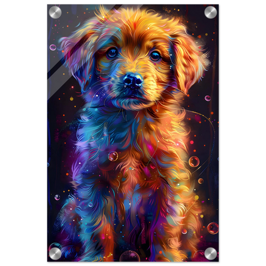 Neon Glow Puppy – Vibrant Cosmic Canine Art. Acrylic Print