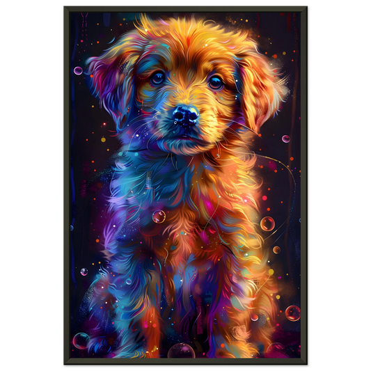 Neon Glow Puppy – Vibrant Cosmic Canine Art. Premium Semi-Glossy Paper Metal Framed Poster