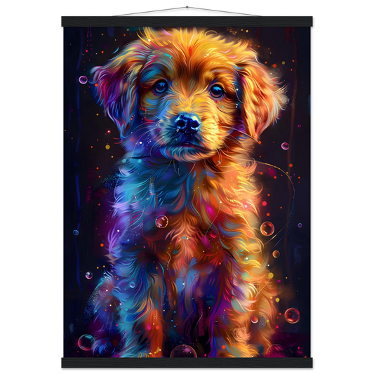 Neon Glow Puppy – Vibrant Cosmic Canine Art. Premium Matte Paper Poster with Hanger
