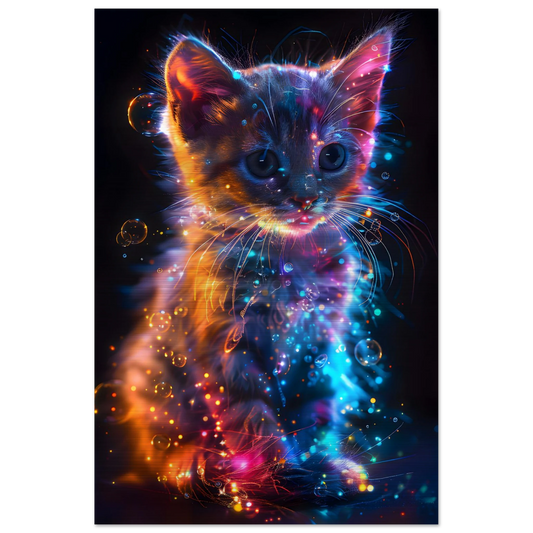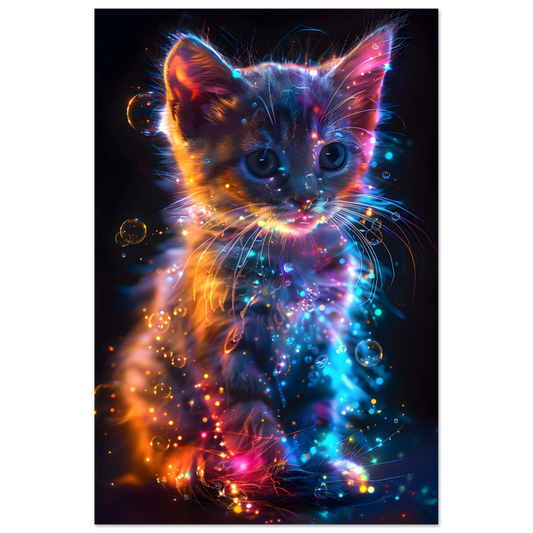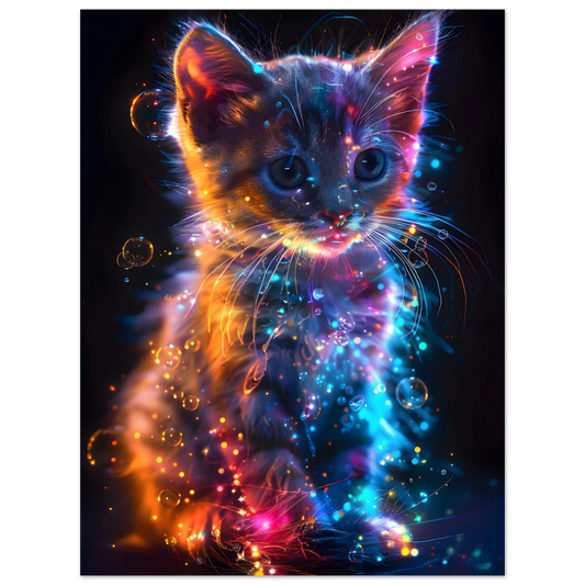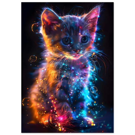 Neon Glow Kitten – Mystical Cosmic Art. Premium Semi-Glossy Paper Poster