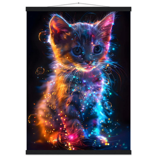 Neon Glow Kitten – Mystical Cosmic Art. Premium Matte Paper Poster with Hanger