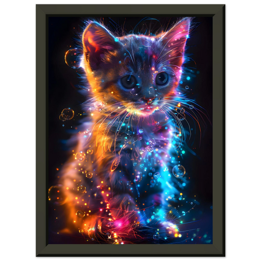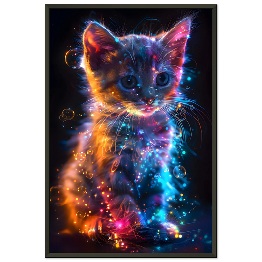Neon Glow Kitten – Mystical Cosmic Art. Premium Matte Paper Metal Framed Poster