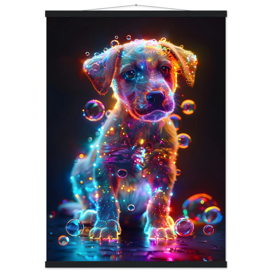Starlit Puppy – Neon Glow Fantasy. Premium Matte Paper Poster with Hanger