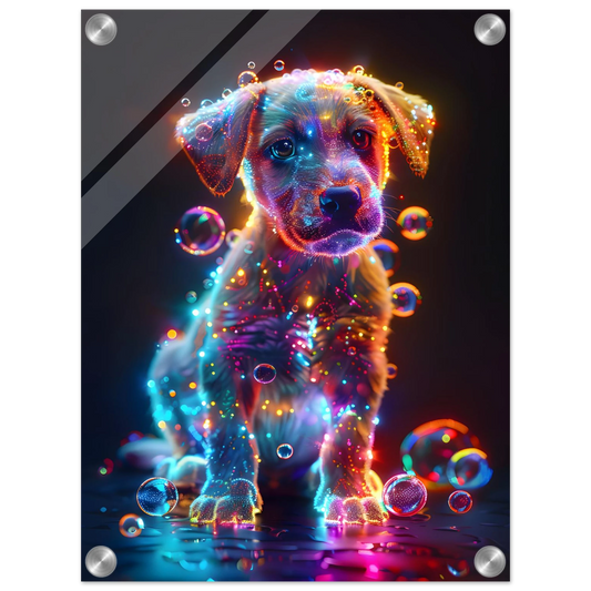 Starlit Puppy – Neon Glow Fantasy. Acrylic Print
