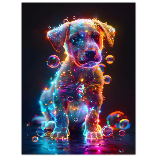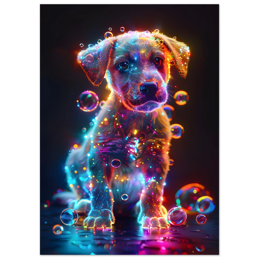 Starlit Puppy – Neon Glow Fantasy. Premium Semi-Glossy Paper Poster