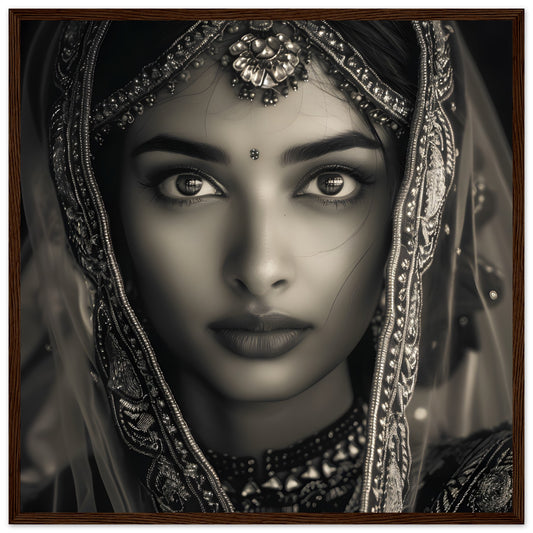 Ethereal Grace: Portrait of Indian Beauty. Premium Semi-Glossy Paper Wooden Framed Poster