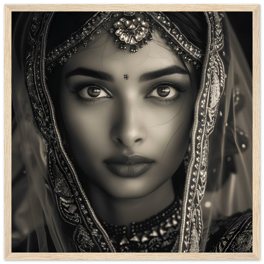 Ethereal Grace: Portrait of Indian Beauty. Premium Semi-Glossy Paper Wooden Framed Poster