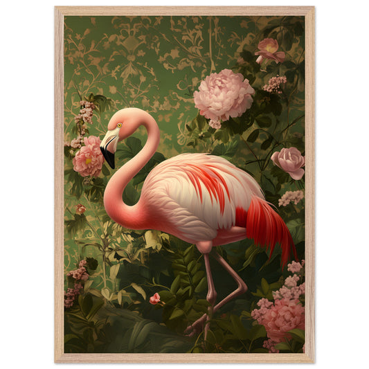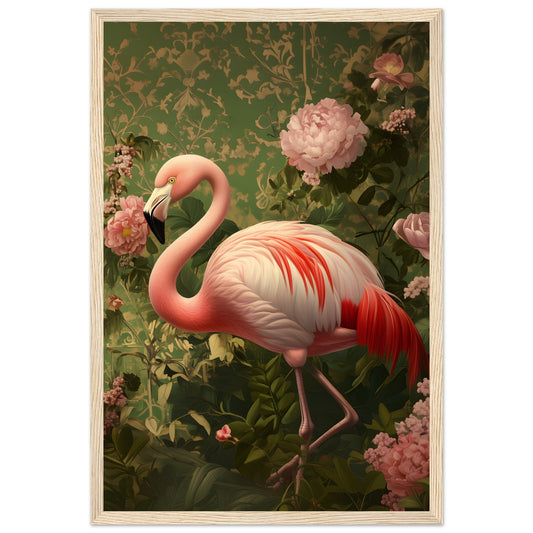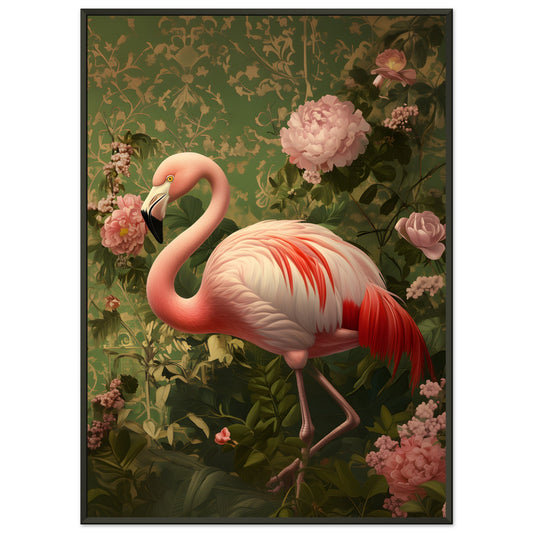 Flamingo in Enchanted Garden. Premium Wooden Framed Poster With Premium Semi-Glossy Paper