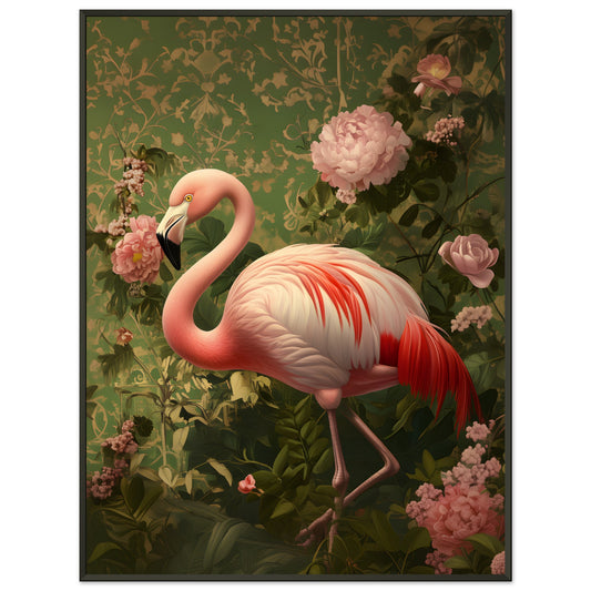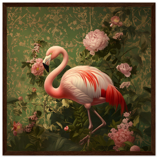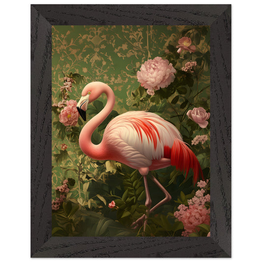 Flamingo in Enchanted Garden. Premium Wooden Framed Poster With Premium Matte Paper