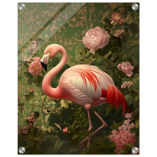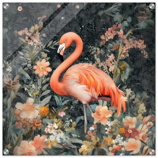 Flamingo in Enchanted Garden. Premium Semi-Glossy Paper Poster
