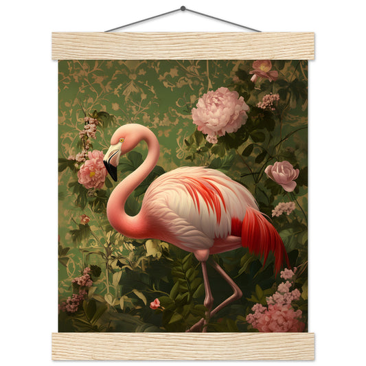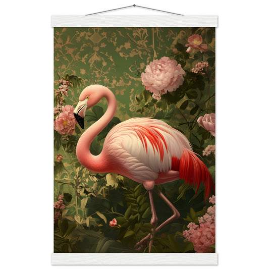 Flamingo in Enchanted Garden. Premium Matte Paper Poster with Hanger