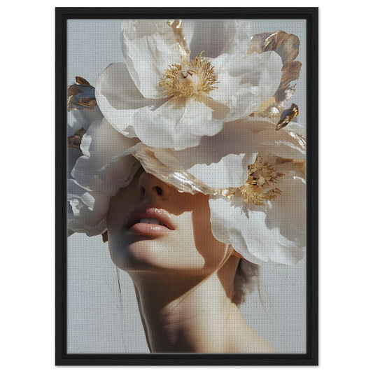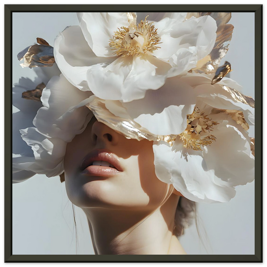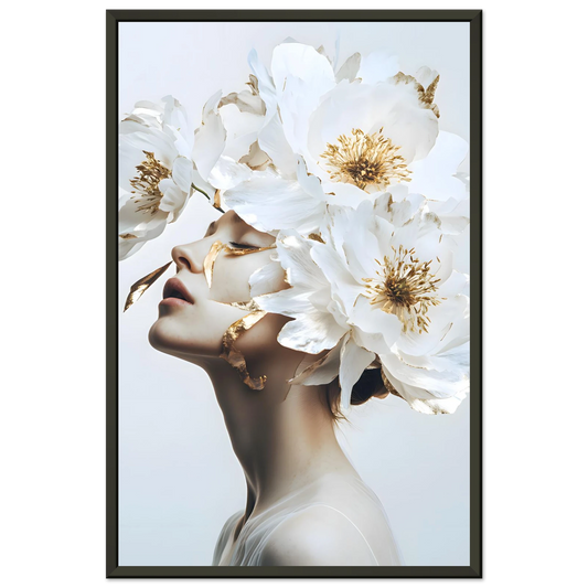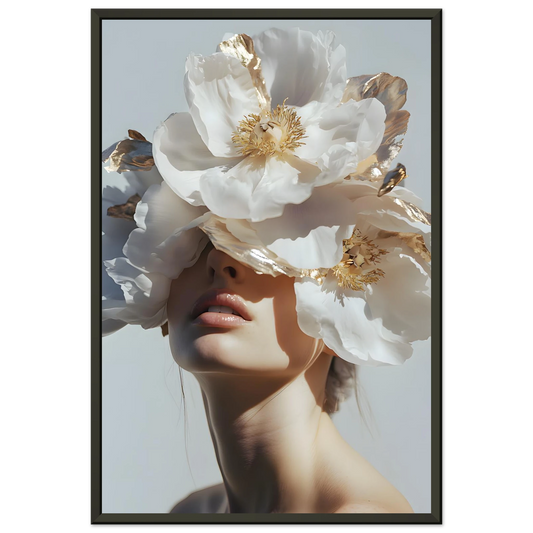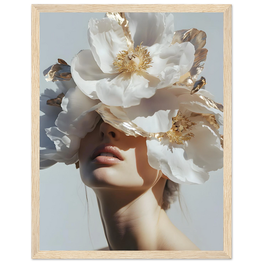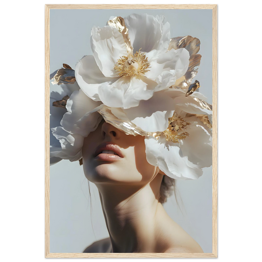 Golden Bloom Veil. Premium Semi-Glossy Paper Wooden Framed Poster