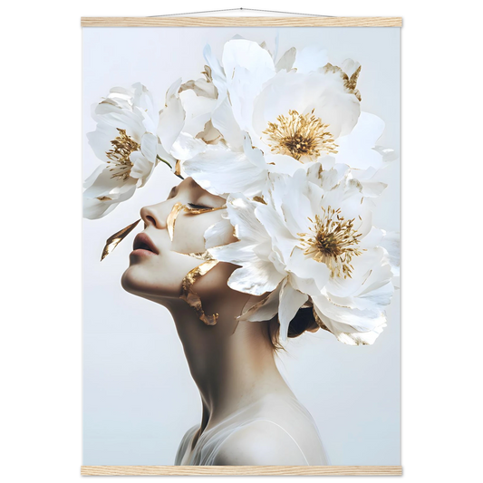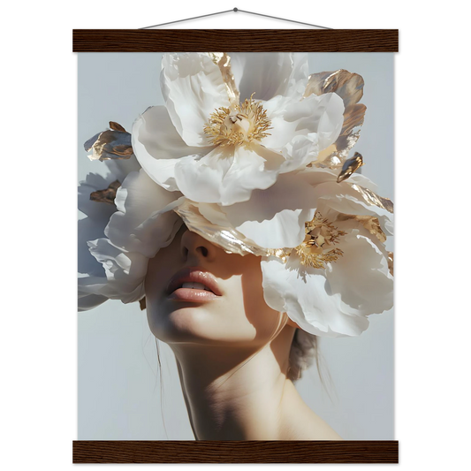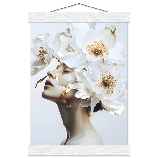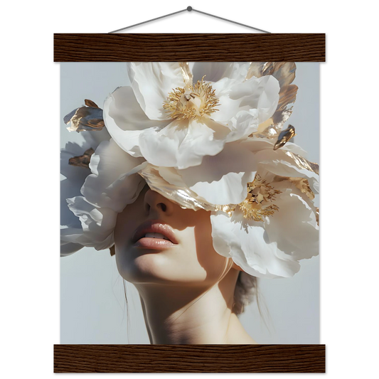Golden Bloom Veil. Premium Semi-Glossy Paper Poster with Hanger