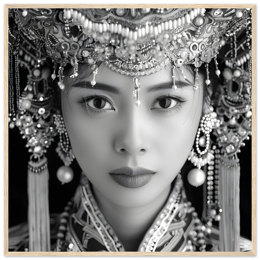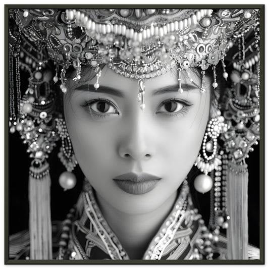 Grace in Tradition: Portrait of Chinese Elegance. Fine Art Wooden Framed Poster