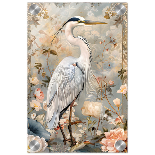 Graceful Heron in Bloom. Acrylic Print