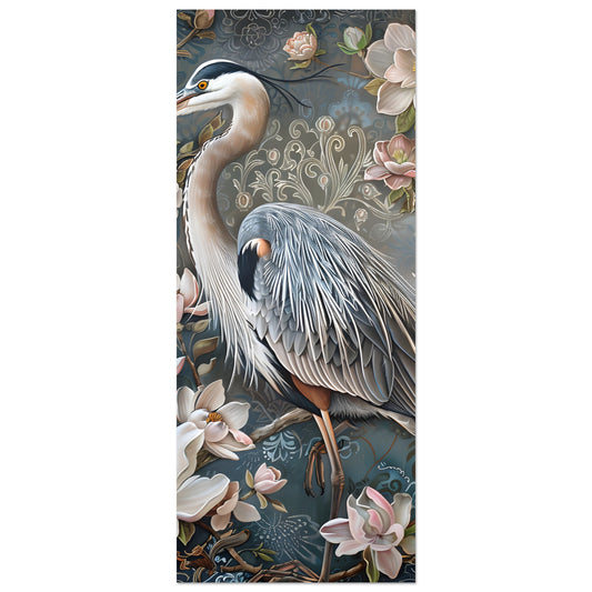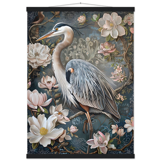 Graceful Heron in Blooming Harmony. Premium Matte Paper Poster with Hanger