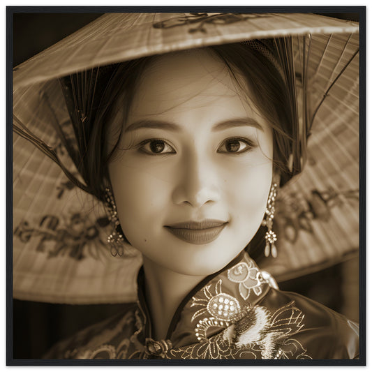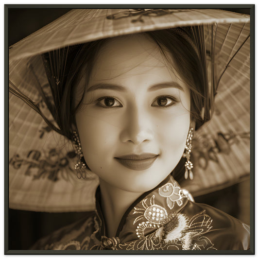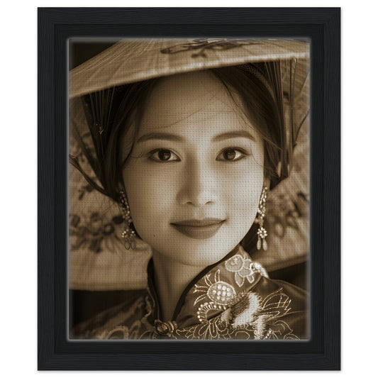 Graceful Vietnamese Beauty in Traditional Attire. Fine Art Wooden Framed Poster