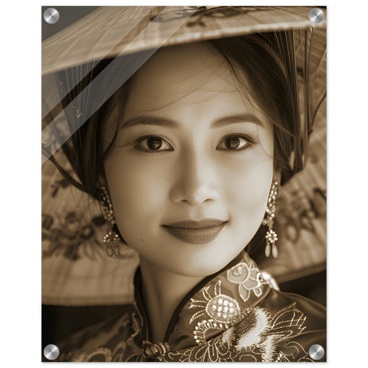 Graceful Vietnamese Beauty in Traditional Attire. Acrylic Print