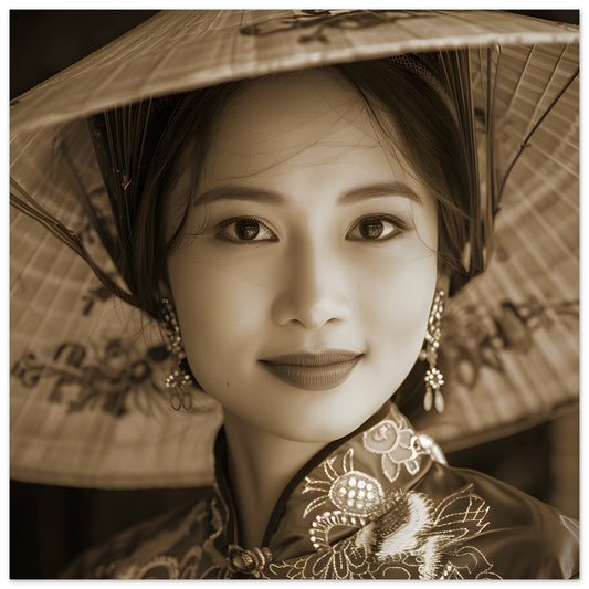 Graceful Vietnamese Beauty in Traditional Attire. Premium Matte Paper Metal Framed Poster