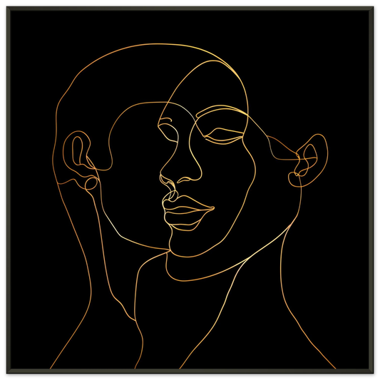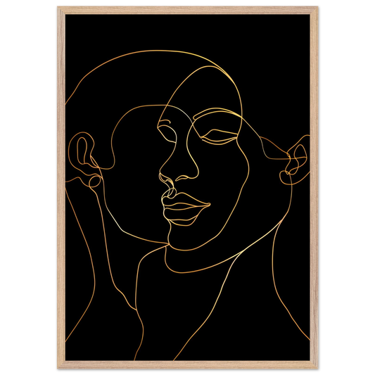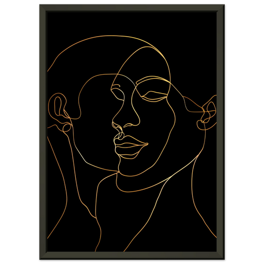 Minimalist Line Art – Elegant Couple Silhouette. Premium Wooden Framed Poster With Premium Matte Paper