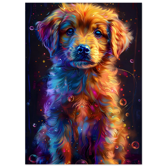 Neon Glow Puppy – Vibrant Cosmic Canine Art. Premium Semi-Glossy Paper Poster