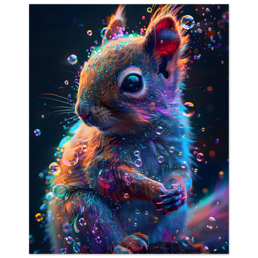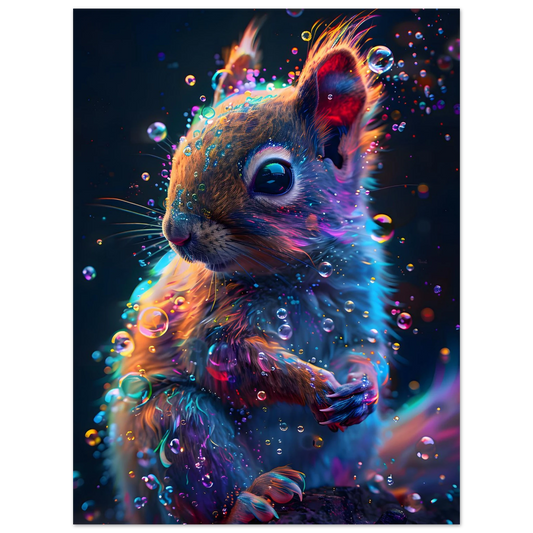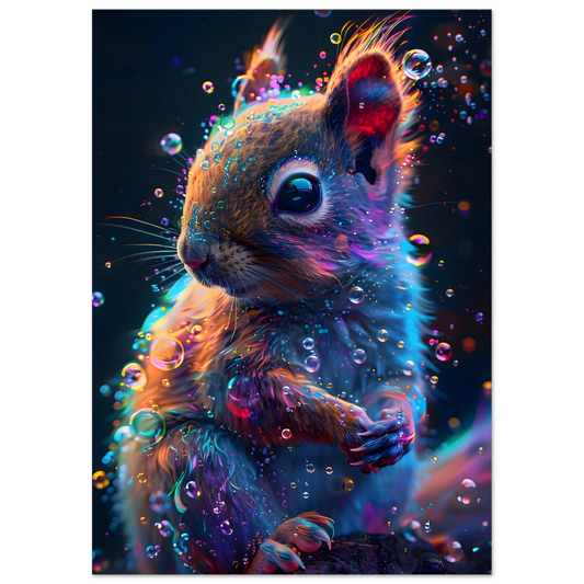 Neon Squirrel – Mystical Forest Glow. Foam Portrait