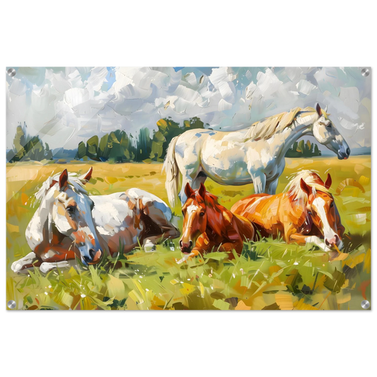 Pastoral Peace – Horses Resting in a Summer Meadow. Acrylic Print