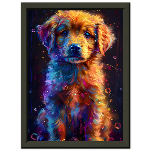 Neon Glow Puppy – Vibrant Cosmic Canine Art. Premium Semi-Glossy Paper Metal Framed Poster