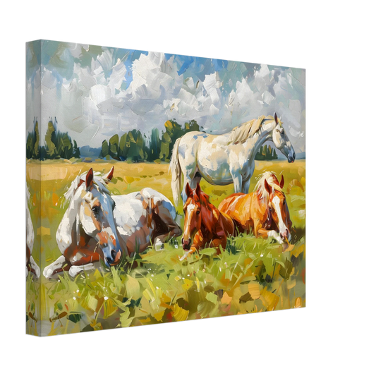 Pastoral Peace – Horses Resting in a Summer Meadow. Canvas