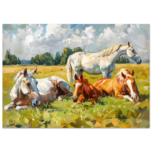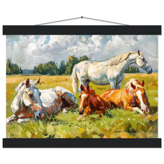Pastoral Peace – Horses Resting in a Summer Meadow. Premium Matte Paper Poster with Hanger