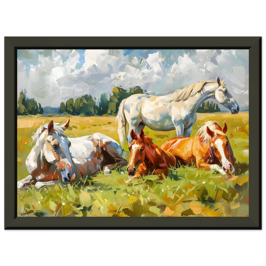 Pastoral Peace – Horses Resting in a Summer Meadow. Premium Matte Paper Metal Framed Poster