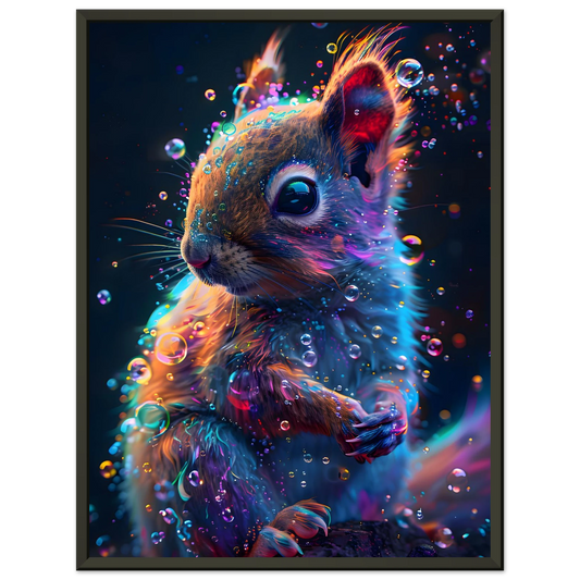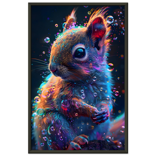 Neon Squirrel – Mystical Forest Glow. Premium Semi-Glossy Paper Metal Framed Poster