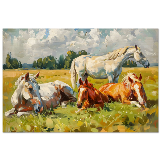 Pastoral Peace – Horses Resting in a Summer Meadow. Wood Prints