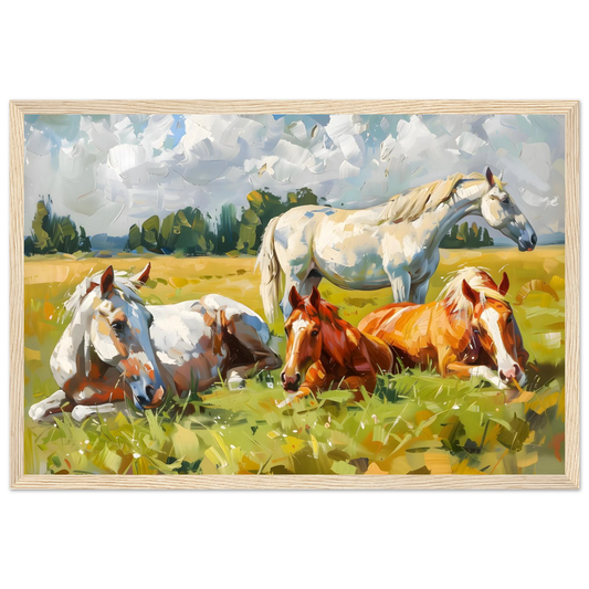 Pastoral Peace – Horses Resting in a Summer Meadow. Premium Matte Paper Wooden Framed Poster