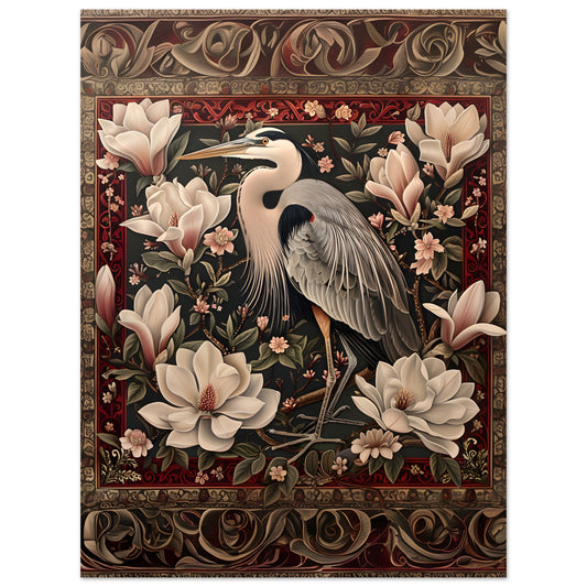 The Regal Heron Tapestry. Premium Semi-Glossy Paper Poster