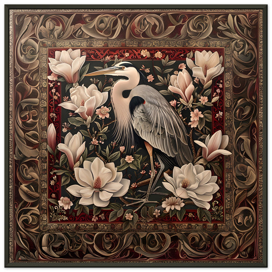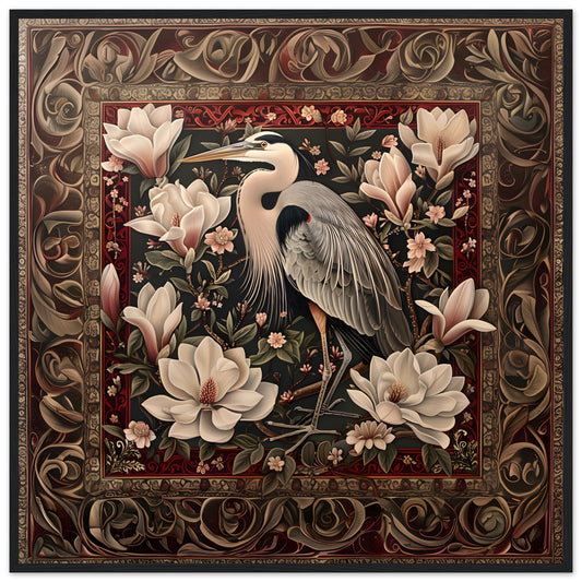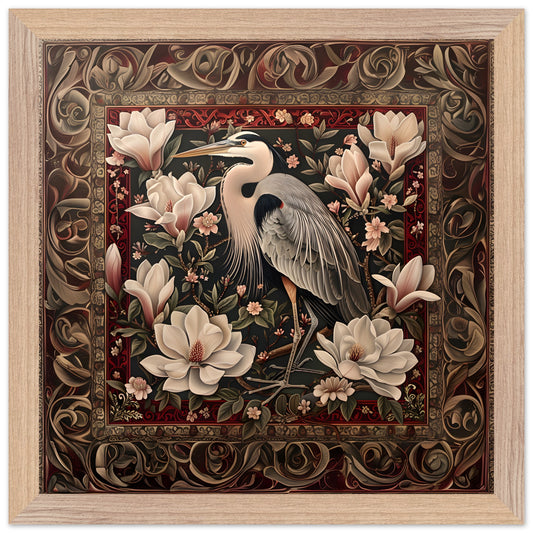The Regal Heron Tapestry. Premium Matte Paper Wooden Framed Poster
