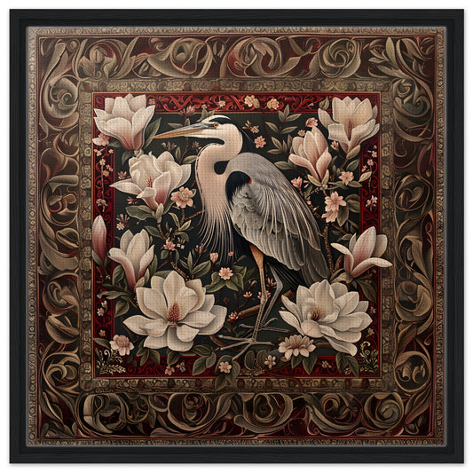 The Regal Heron Tapestry. Framed Canvas