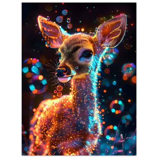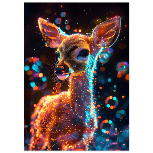 Enchanted Fawn – Neon Glow Fantasy. Fine Art Poster