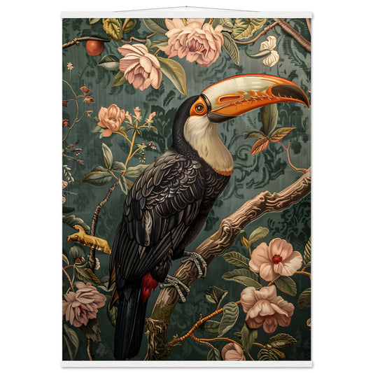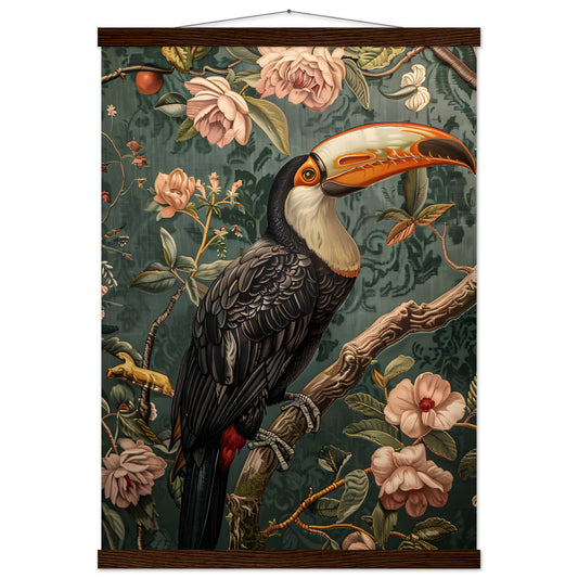 Elegant Toucan in Floral Harmony. Premium Semi-Glossy Paper Poster with Hanger