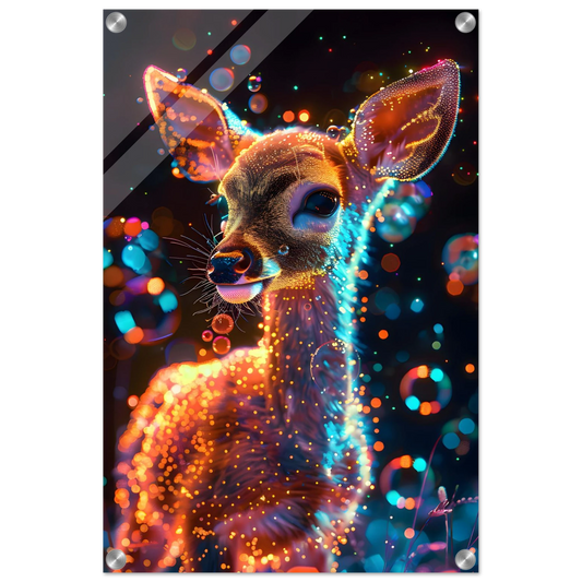 Enchanted Fawn – Neon Glow Fantasy. Acrylic Print